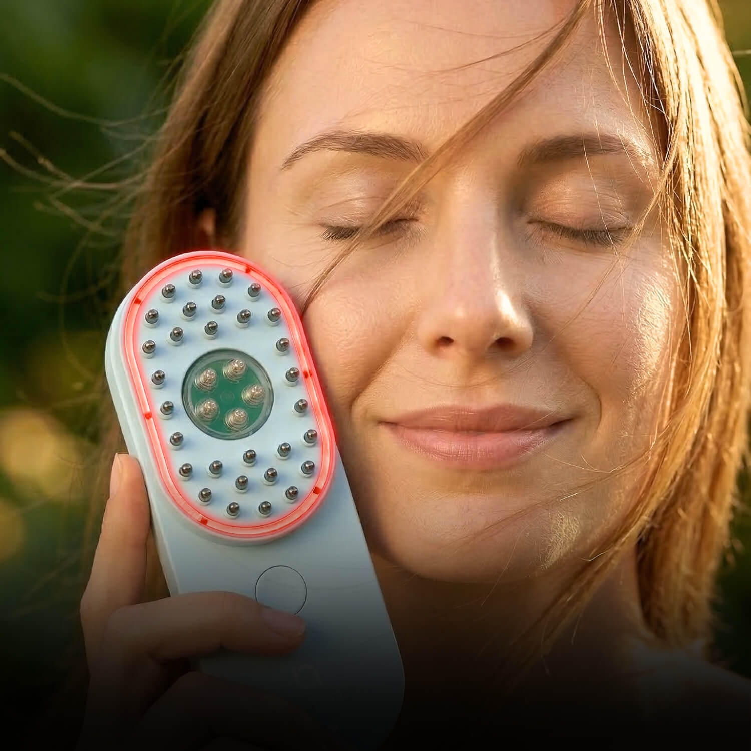 ✨ Wrinkle Smoothing: Deep-reaching Red Light and Near-Infrared to stimulate collagen and visibly soften deep lines.